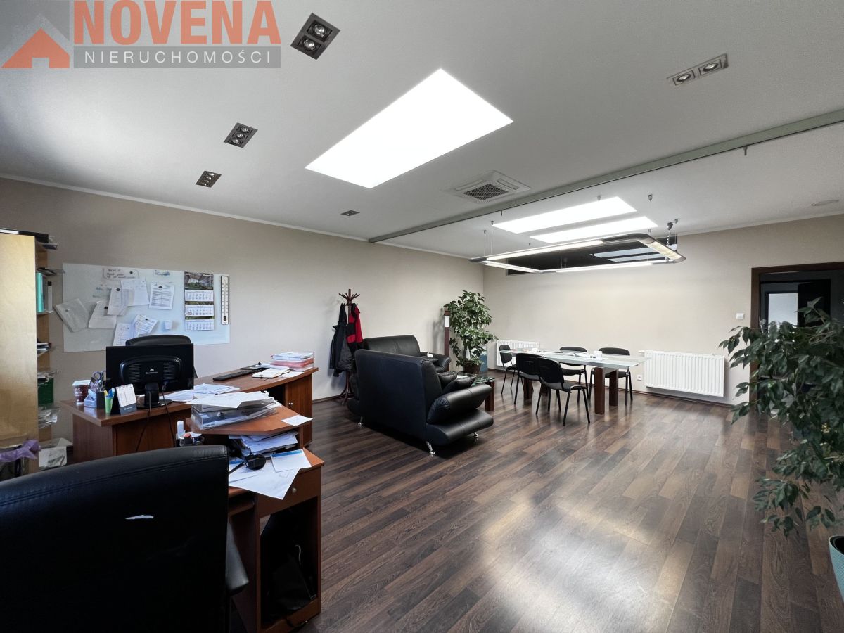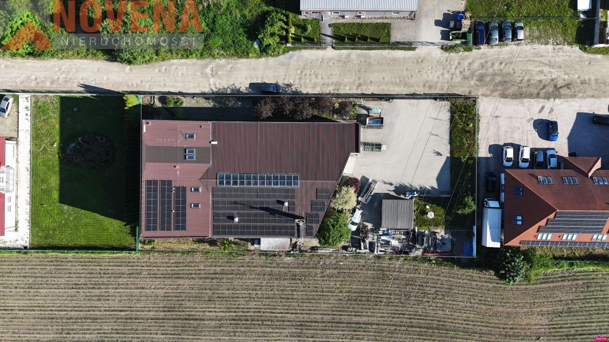 Dach budynku kryty blachą, na której zamontowano panele fotowoltaiczne o mocy 40kW, dzięki czemu rachunki za prąd są znikome. Konstrukcja ścian wykonana z pustaków Ytong. Na parterze znajduje się hala do zagospodarowania w zależności od zapotrzebowania, która zajmuje znaczną część tego poziomu. Dotychczas pomieszczenie te służyło do produkcji szyb. Następne pomieszczenie to część socjalna dla pracowników, kuchnia, jadalnia i szatnia. Idąc korytarzem przechodzimy do głównego wejścia do budynku, z którego można bezpośrednio przejść na pierwsze piętro. Na pierwszej kondygnacji znajdują się pomieszczenia biurowe, dwa mieszkania oraz łazienka świeżo po remoncie!