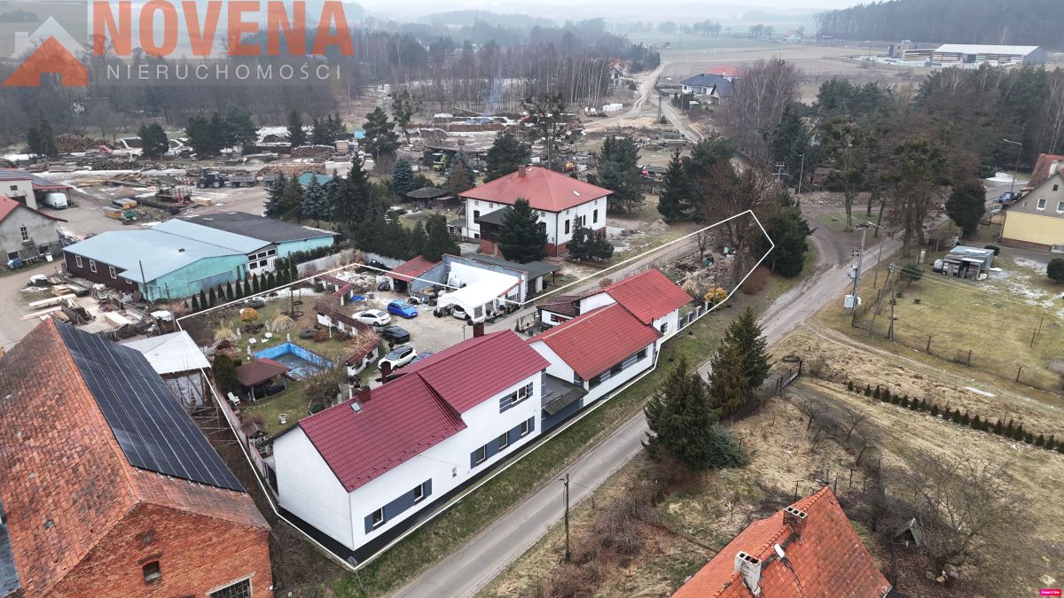 Do zaoferowania dom z zabudowaniami usługowymi o łącznej powierzchni 520m2 zlokalizowany w centralnej części Świerzowa na działce o pow. 2580m2. Część mieszkalna o pow. 220m2 składa się z trzech sypialni, dwóch kuchni, dwóch łazienek, WC, przedpokoju i korytarzu. Część usługowa budynku zajmuje ok 300m2 i na dzień dzisiejszy jest ona zagospodarowywana pod usługi blacharsko lakiernicze. Istnieje możliwość dalszej zabudowy działki zgodnie z obowiązującą uchwałą planu miejscowego pod usługi.