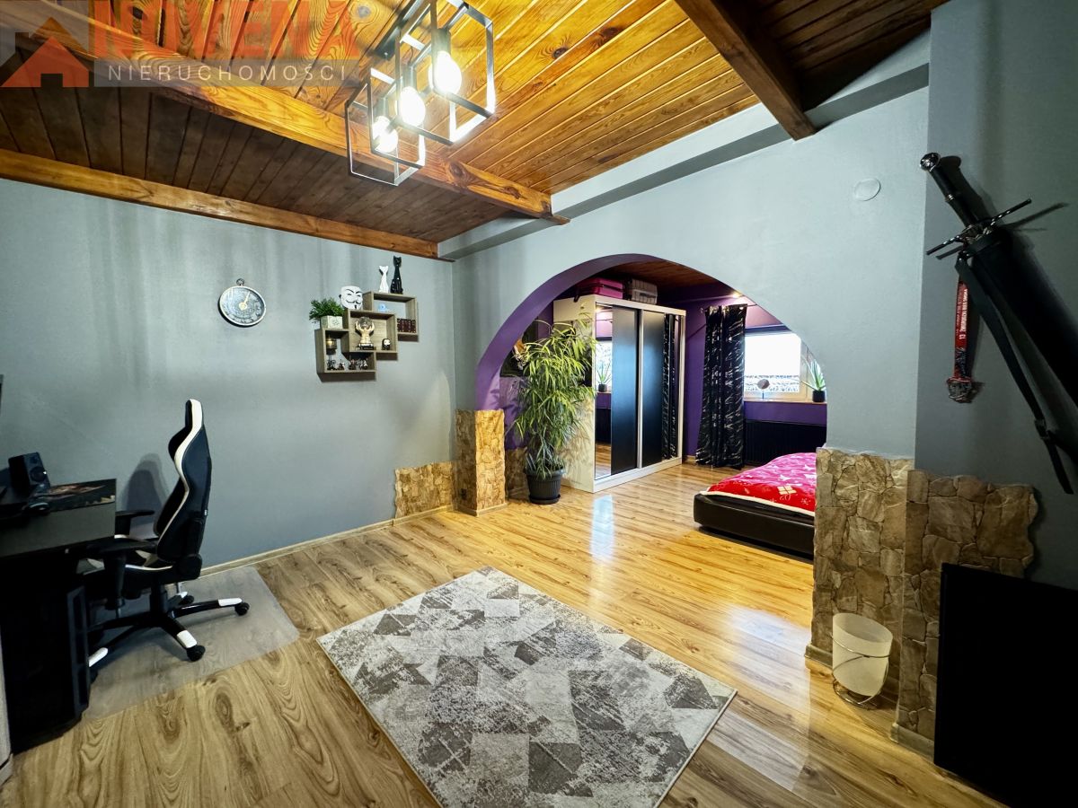Budynek jest zadbany i po przeprowadzonych pracach modernizacyjnych, obejmujących remont dachu, wymianę okien oraz ocieplenie elewacji warstwą styropianu o grubości 10 cm. Istnieje możliwość wyodrębnienia większej ilości pokoi w części mieszkalnej.