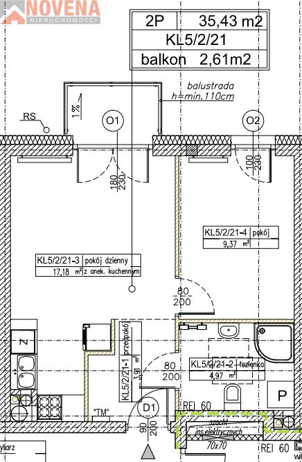 - funkcjonalną przestrzenią 35,43m2